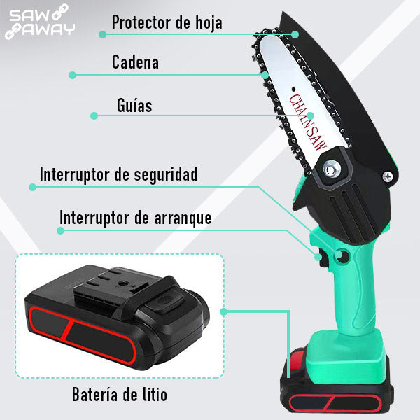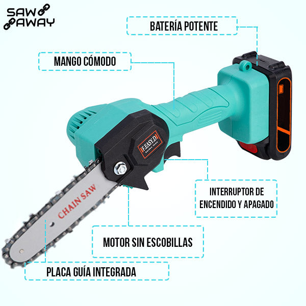SawAway ™ es una práctica sierra inalámbrica que mantendrá sus árboles y paisajes perfectamente mantenidos. Es excelente para podar, dar forma a las ramas de los árboles y otras tareas domésticas en el jardín. El mango ergonómico garantiza un mejor agarre durante el trabajo y facilitasu transporte. SawAway ™ es fácil de usar y mantener. Consiste en protección contra sobrecarga y una guía de corriente especial que no requiere lubricación, mientras que la batería recargable garantiza una carga rápida. La sierra manual es adecuada para niños individuales, ya que la corriente de alta calidad y el motor extremadamente potente garantizan una eliminación precisa, eficiente y rápida de diferentes ramas. SawAway ™ sin duda se convertirá en su herramienta favorita para todas las tareas de jardinería.